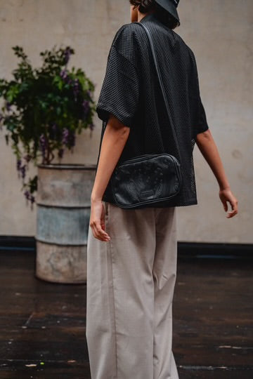 This bag is the size of our shoulder bag swung 45 degrees hence the name 'swing' bag. It's the shoulder bag swung sideways.